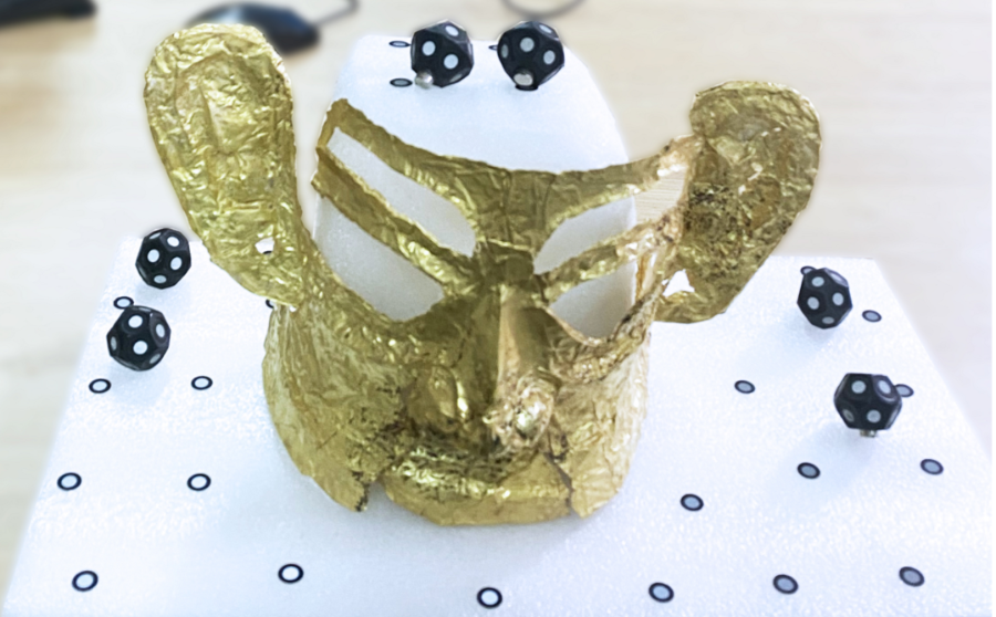 ▲純藍光技術,針對薄如蟬翼的金面罩,也可輕松獲取高亮表面的高精度點云數據。