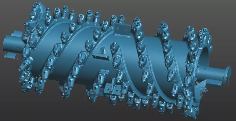 銑刨鼓是道路銑刨機的核心,需經過嚴格的檢測,以避免磨損以及變形的負荷縮短設備使用壽命。過去采用接觸式打點來進行檢測,不但測量速度慢,而且測量死角多,測量數據不全,且銑刨鼓的刀頭為活動刀頭,裝配后測量無法測得準確的刀頭點位。