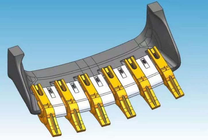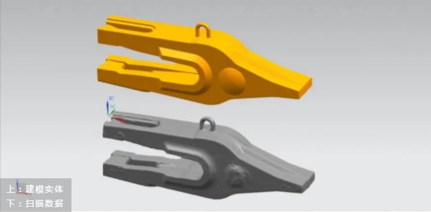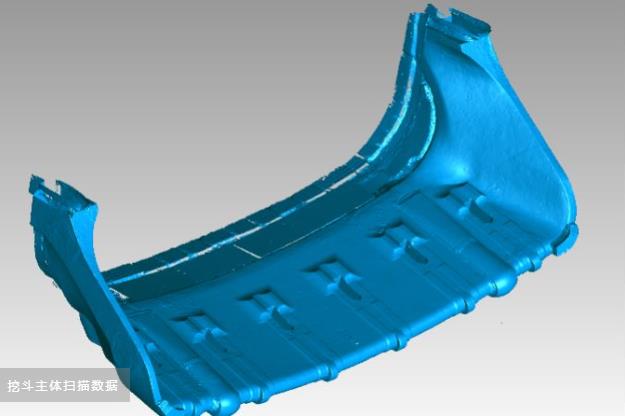 客戶主要經營礦山機械的開發和生產,現在需要對現有老舊礦山挖斗進行更新優化和創新。礦山挖斗本身較大,長度約3米,主要掃描區域為挖斗前裝配挖齒的部分,最后將挖斗主體與配件挖齒裝配,進行開模加工。